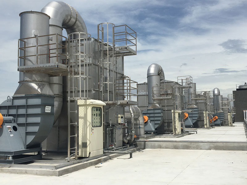 設備特點設計低溫觸媒洗滌塔,低溫觸媒液將揮發性有機氣體(VOCs)分子吸附在低溫觸媒中,並以氧化還原反應將發性有機氣體(VOCs)轉換成二氧化碳與水,達到去除 VOC 之目的。