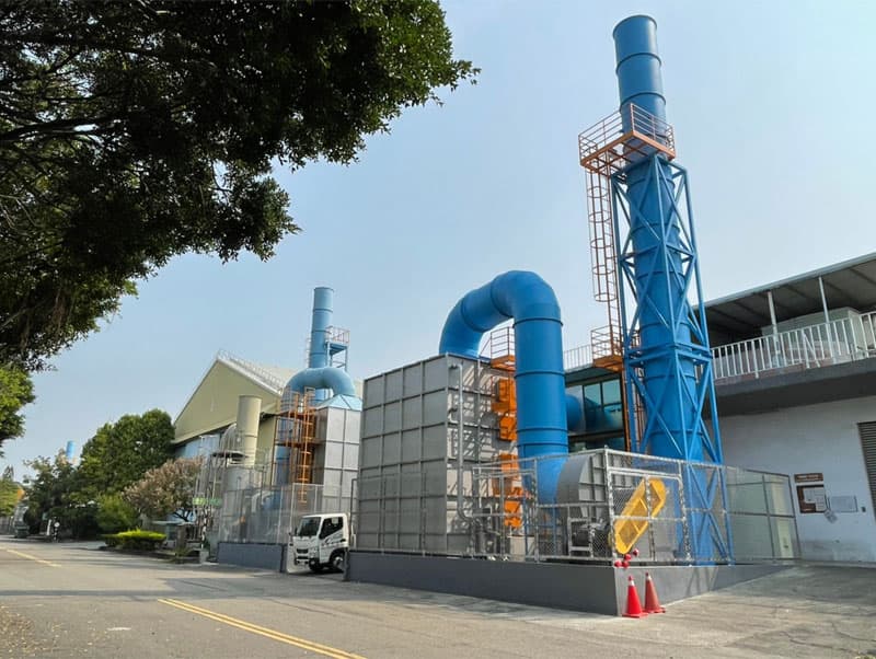 設備特點設計低溫觸媒洗滌塔,低溫觸媒液將揮發性有機氣體(VOCs)分子吸附在低溫觸媒中,並以氧化還原反應將發性有機氣體(VOCs)轉換成二氧化碳與水,達到去除 VOC 之目的。並與空調設備協作調控改變風機頻率,達到節能最佳化的效益。