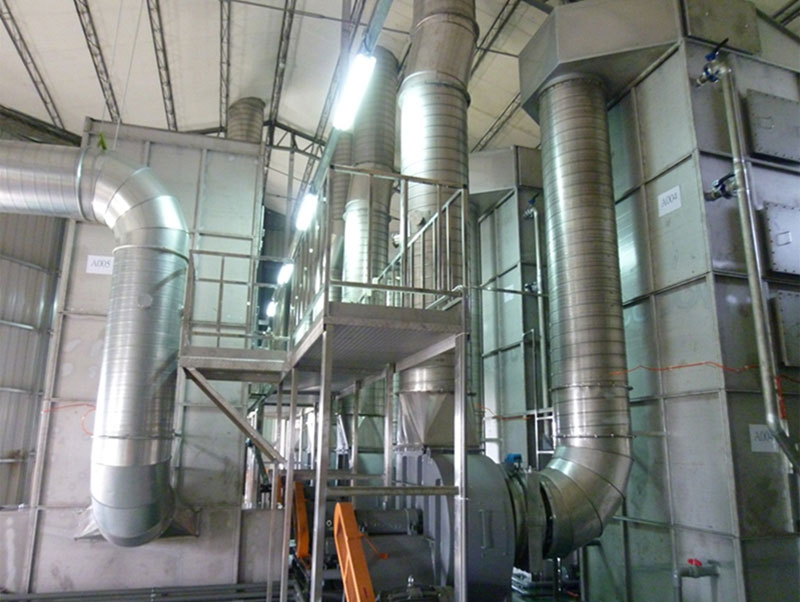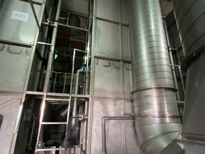 設備特點設計低溫觸媒洗滌塔,第一道洗滌先將塗料粒狀物去除,第二道低溫觸媒液再將揮發性有機氣體(VOCs)分子吸附在低溫觸媒中,並以氧化還原反應將發性有機氣體(VOCs)轉換成二氧化碳與水,達到去除 VOC 之目的。