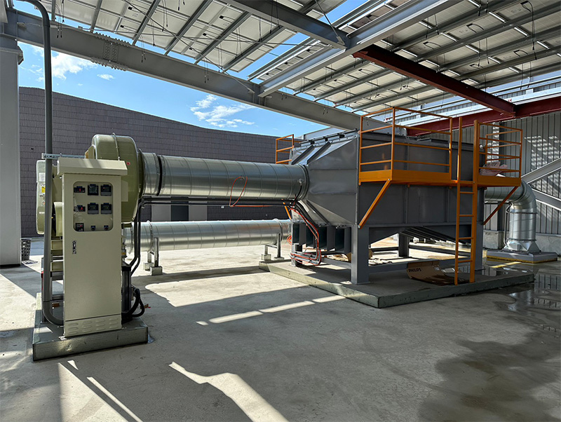 解決方案活性碳吸附塔利用活性碳顆粒表面作用力,將揮發性有機氣體(VOCs)分子吸附在活性碳表面,以達到去除 VOC 物質之目的。