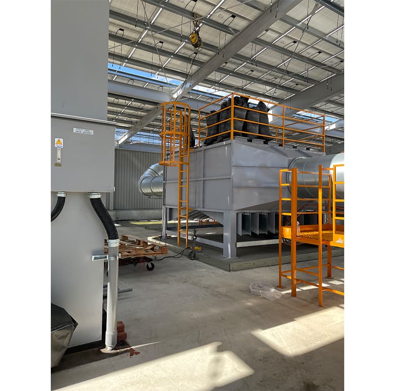 廢氣進入塔內後,經粗過濾去除較大顆粒後,接著與活性碳表面充分接觸,氣體中的揮發性有機物(VOCs)或異味分子被吸附在活性碳的微孔結構中,經處理後的潔淨氣體排放至外部。
